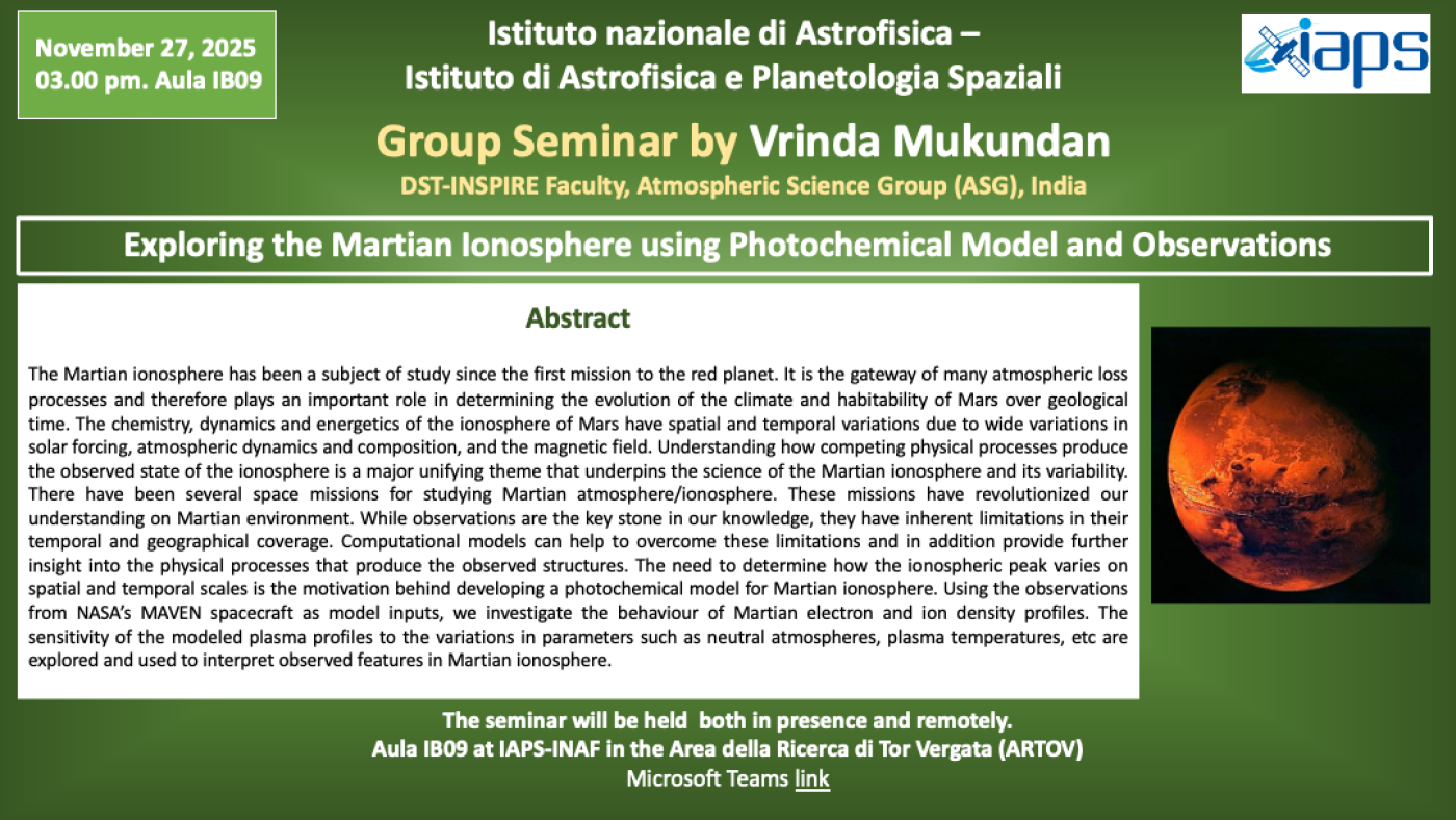 Speaker: Vrinda Mukundan (DST-INSPIRE Faculty, ASG, India)