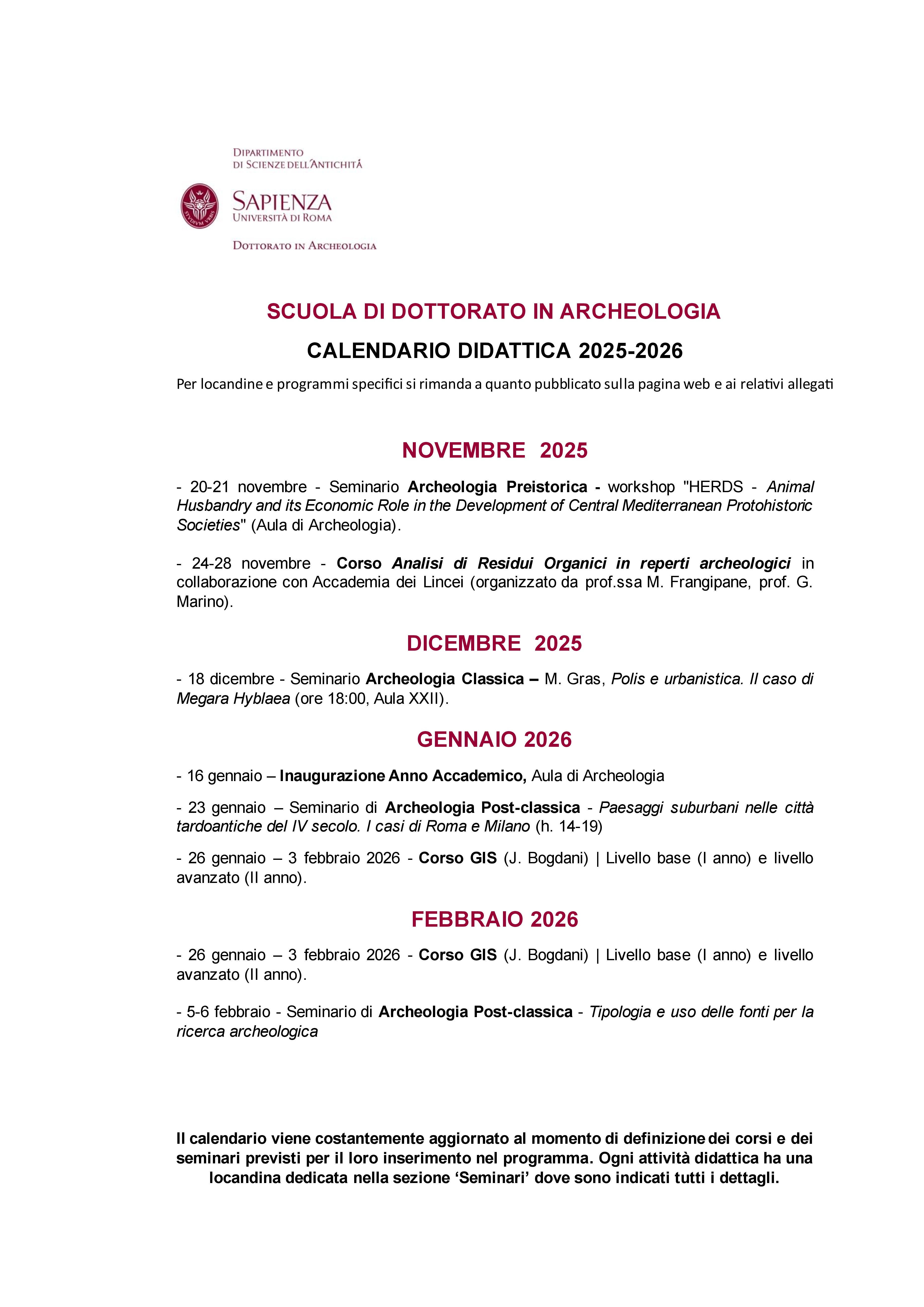 2)ARCHEOLOGIA E ANTICHITA' POST-CLASSICHE - Coordinatore: Prof. Max Victor David