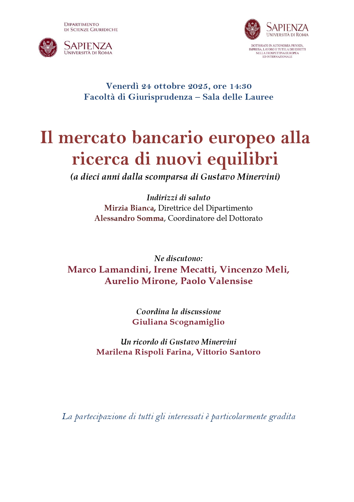 24 ottobre 2025, ore 14:30 - Facoltà di Giurisprudenza – Sala delle Lauree