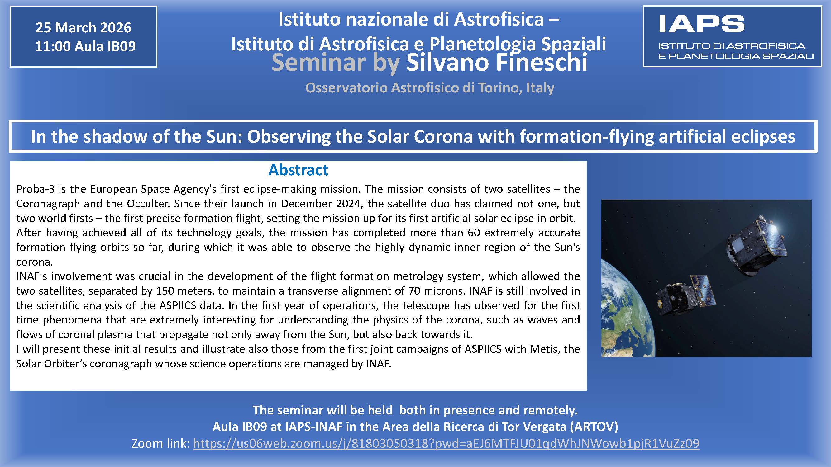 Speaker: Silvano Fineschi, INAF - Osservatorio Astrofisico di Torino