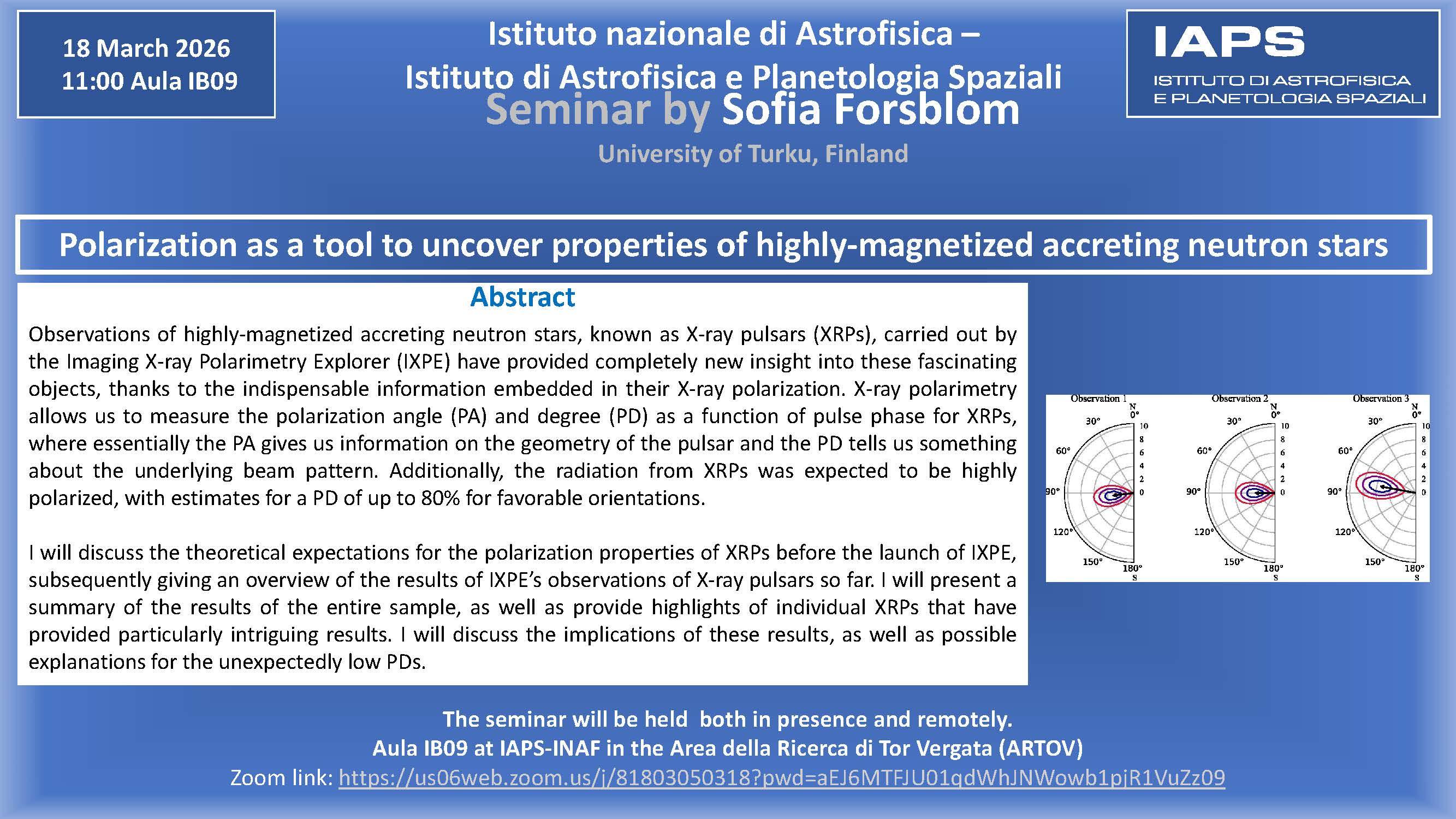 The seminar will be held in aula IB09 at IAPS-INAF in the Area di Ricerca di Tor Vergata (ARTOV).