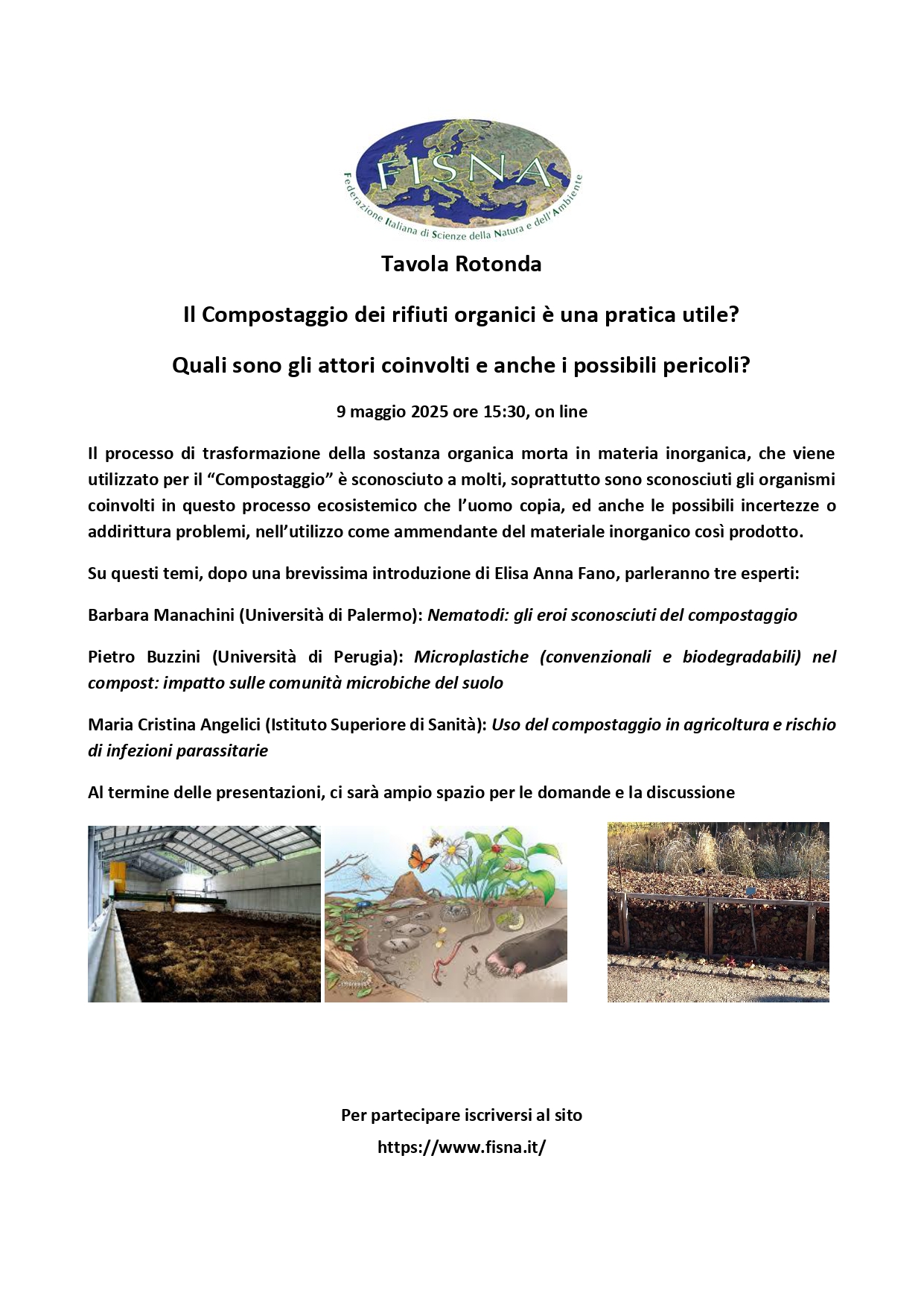 Barbara Manachini (Università di Palermo): Nematodi: gli eroi sconosciuti del compostaggio Pietro Buzzini (Università di Perugia): Microplastiche (convenzionali e biodegradabili) nel compost: impatto sulle comunità microbiche del suolo